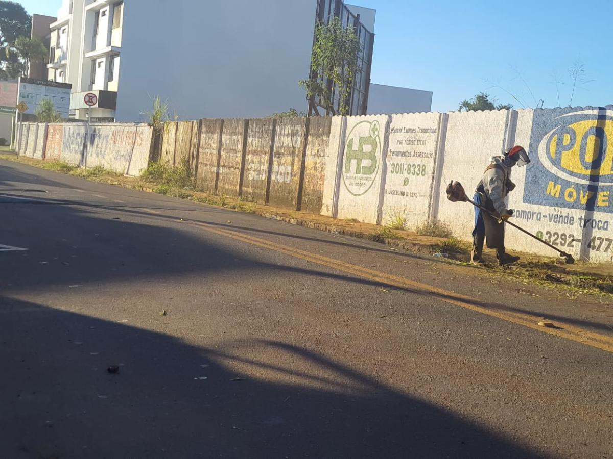 As equipes da secretaria realizaram limpeza e corte de vegetação que em alguns casos atrapalham pedestres e motoristas que circulam pelas vias.