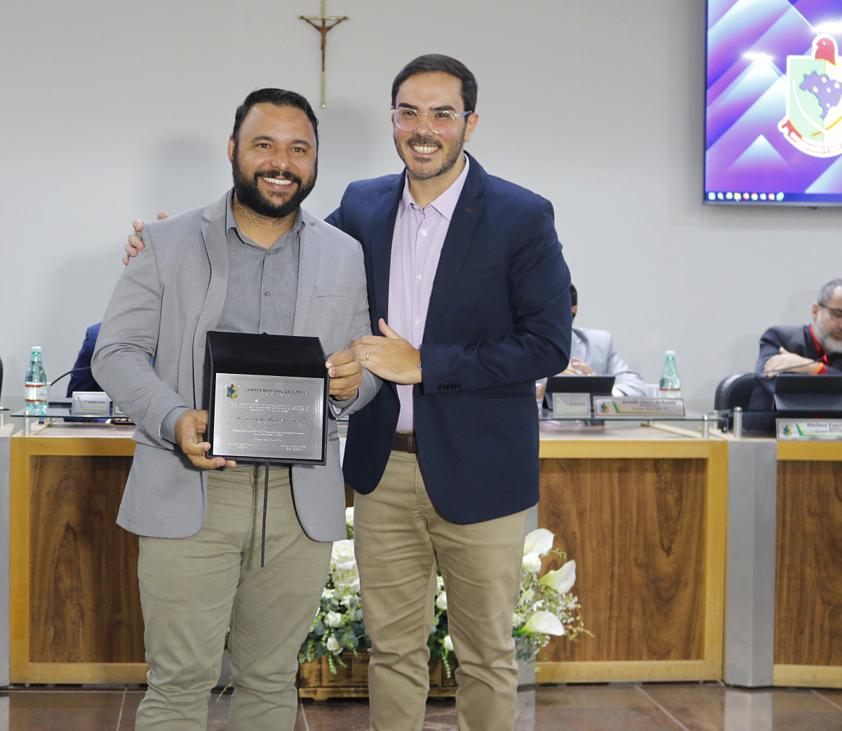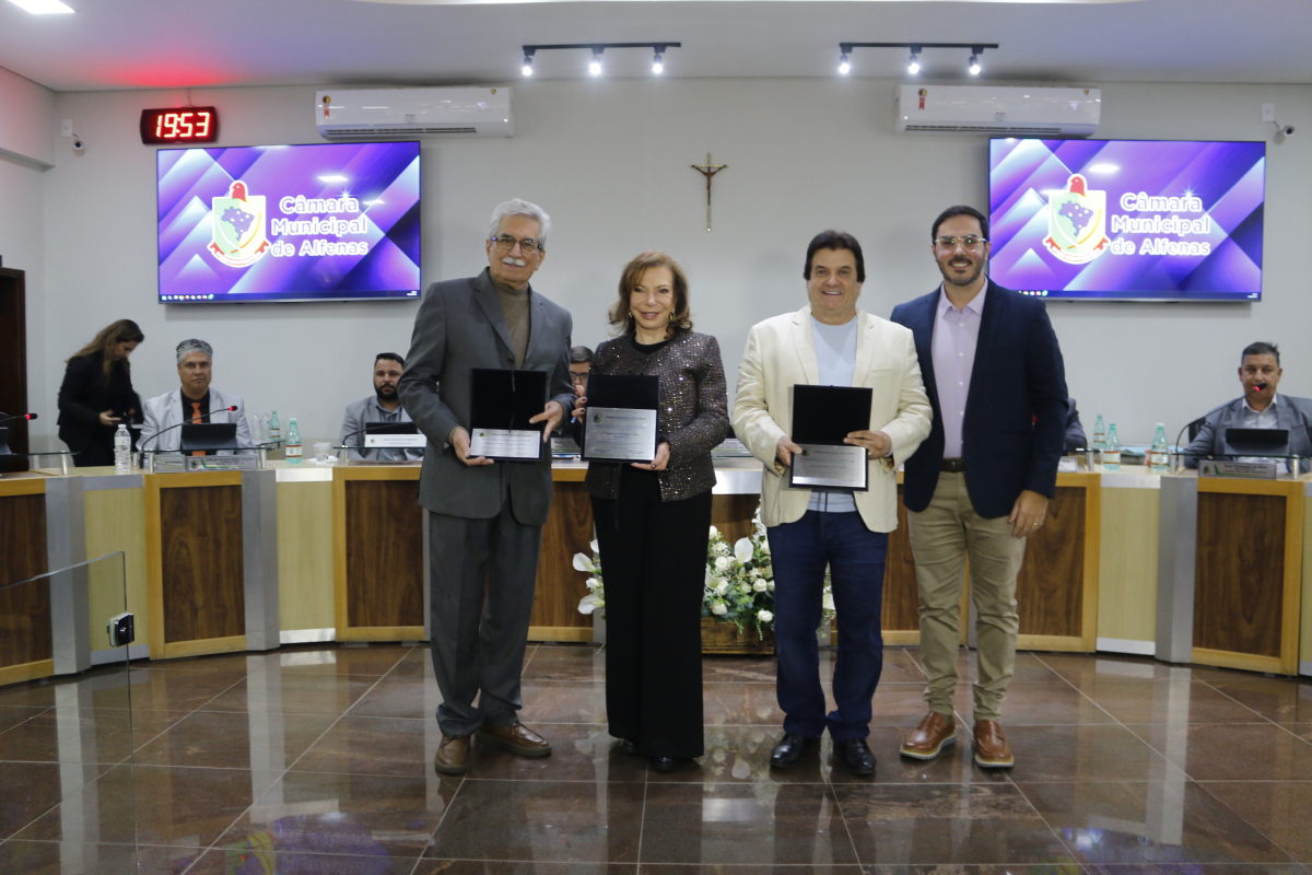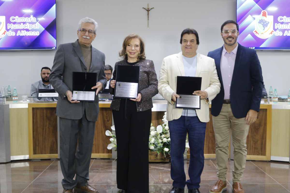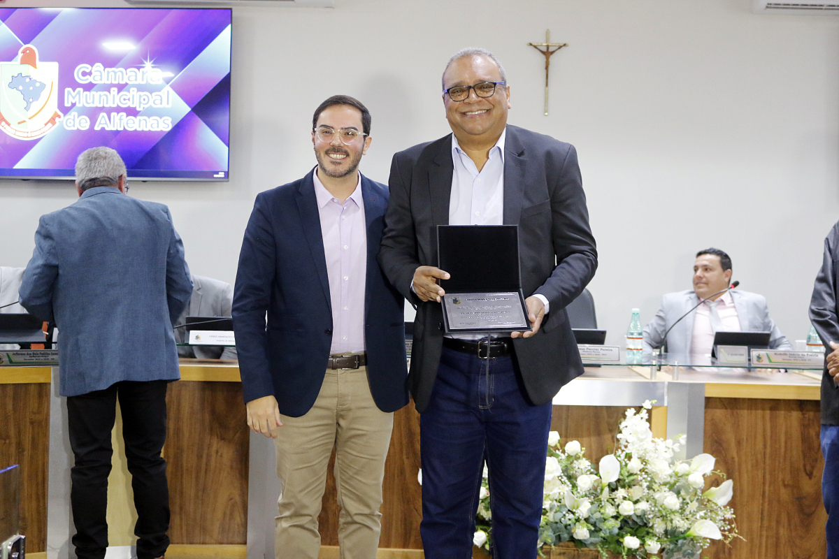 Ambos foram homenageados na celebração dos quarenta anos do Legislativo Municipal de Alfenas.