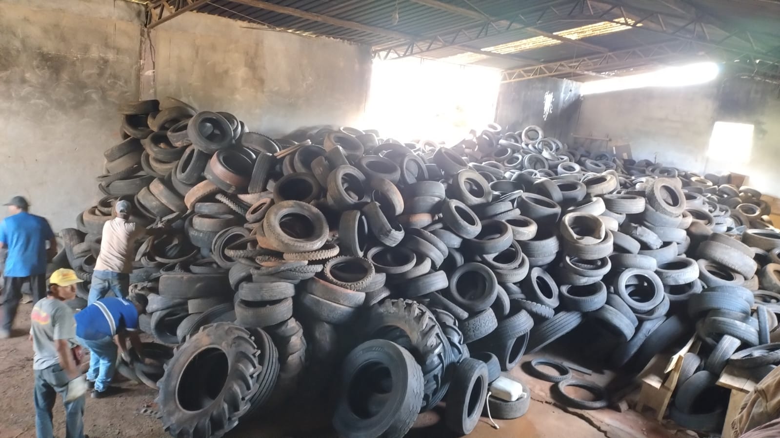 Pneus inservíveis abandonados em terrenos baldios ou descartados de forma incorreta, podem ser um foco potencial de proliferação do mosquito Aedes Aegypti, um dos principais vetores de transmissão da dengue.