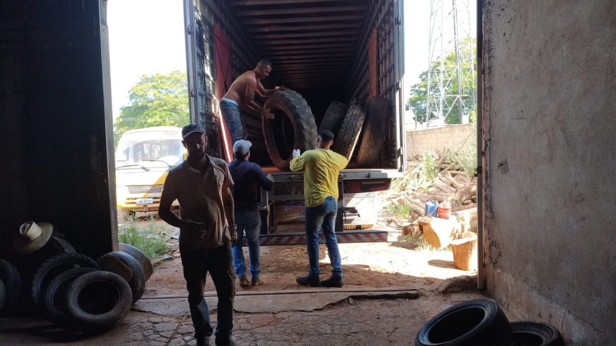 Na quinta-feira (20/02), mais um carregamento de pneus inservíveis foi levado para Belo Horizonte para serem descartados de maneira correta por meio da reciclagem por uma empresa que tritura os pneus transformando em matéria prima para várias utilizações.