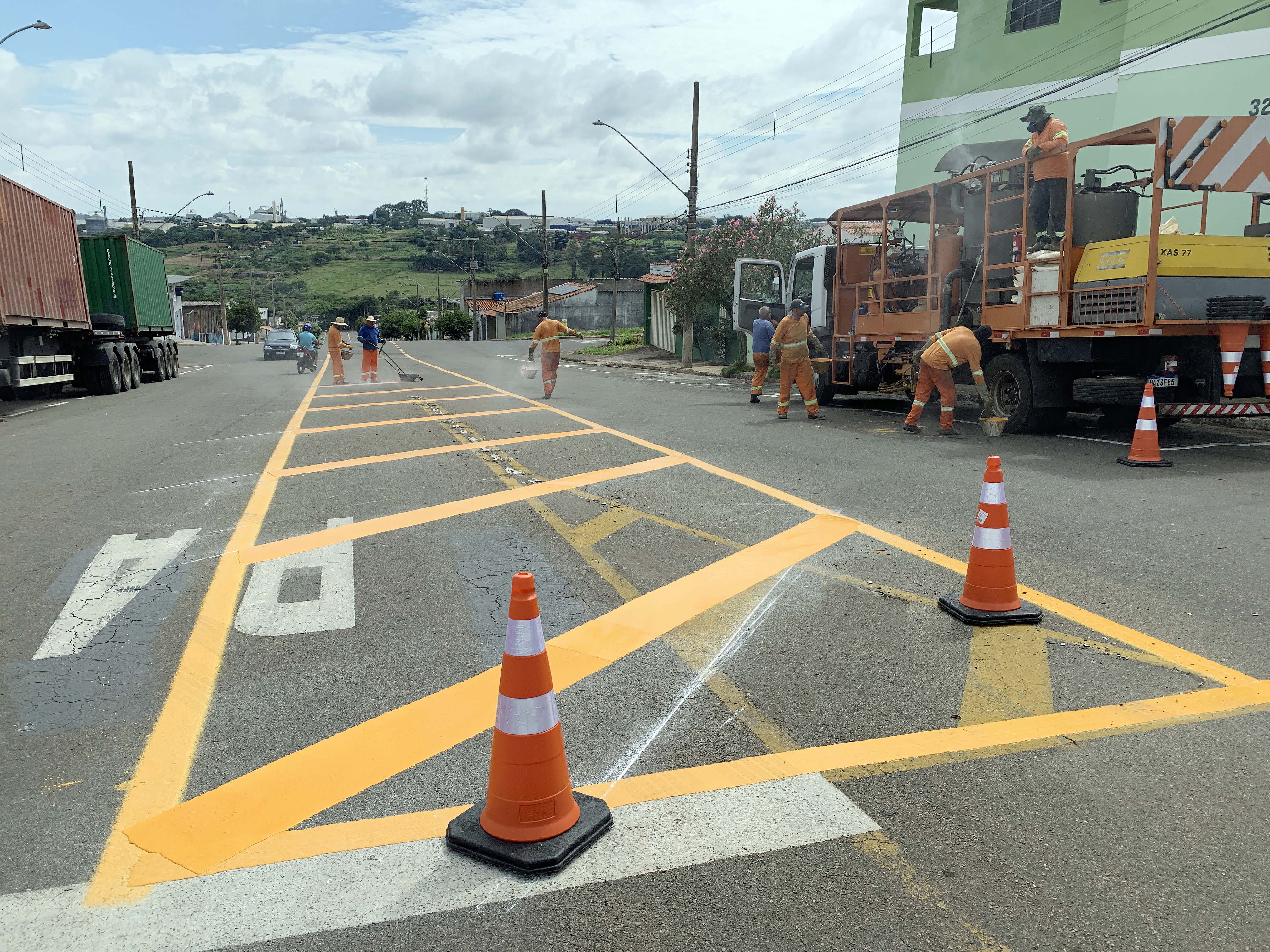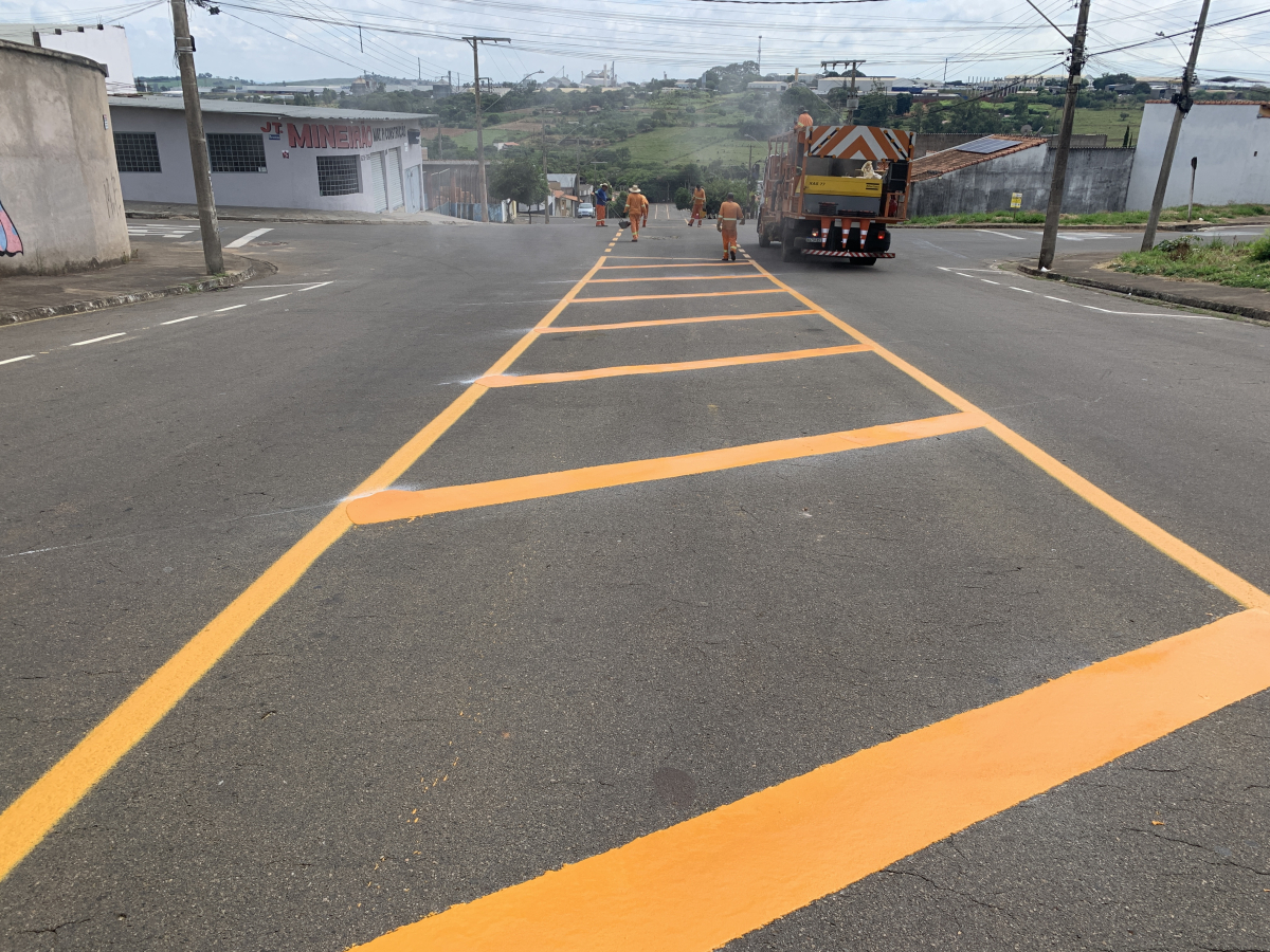 A Prefeitura de Alfenas, por meio da Superintendência de Trânsito está realizando a sinalização horizontal na rua Samuel Vilhena Valadão no Jardim Boa Esperança.