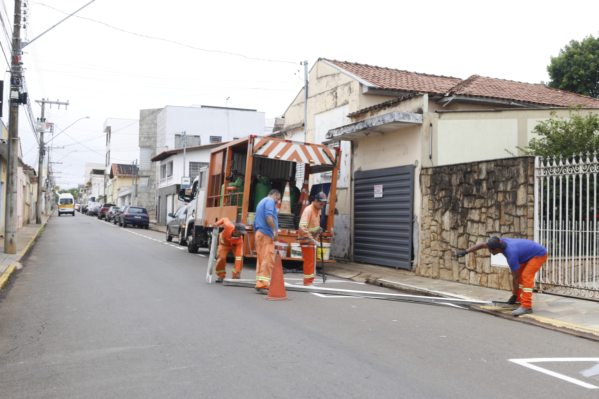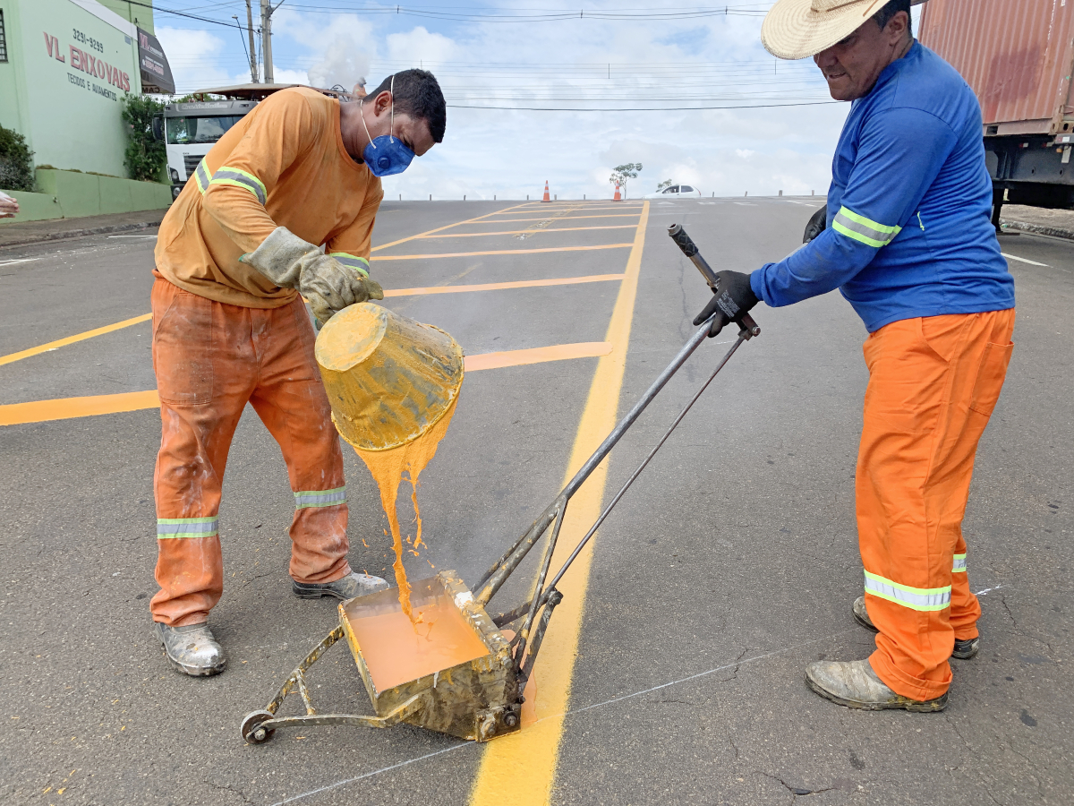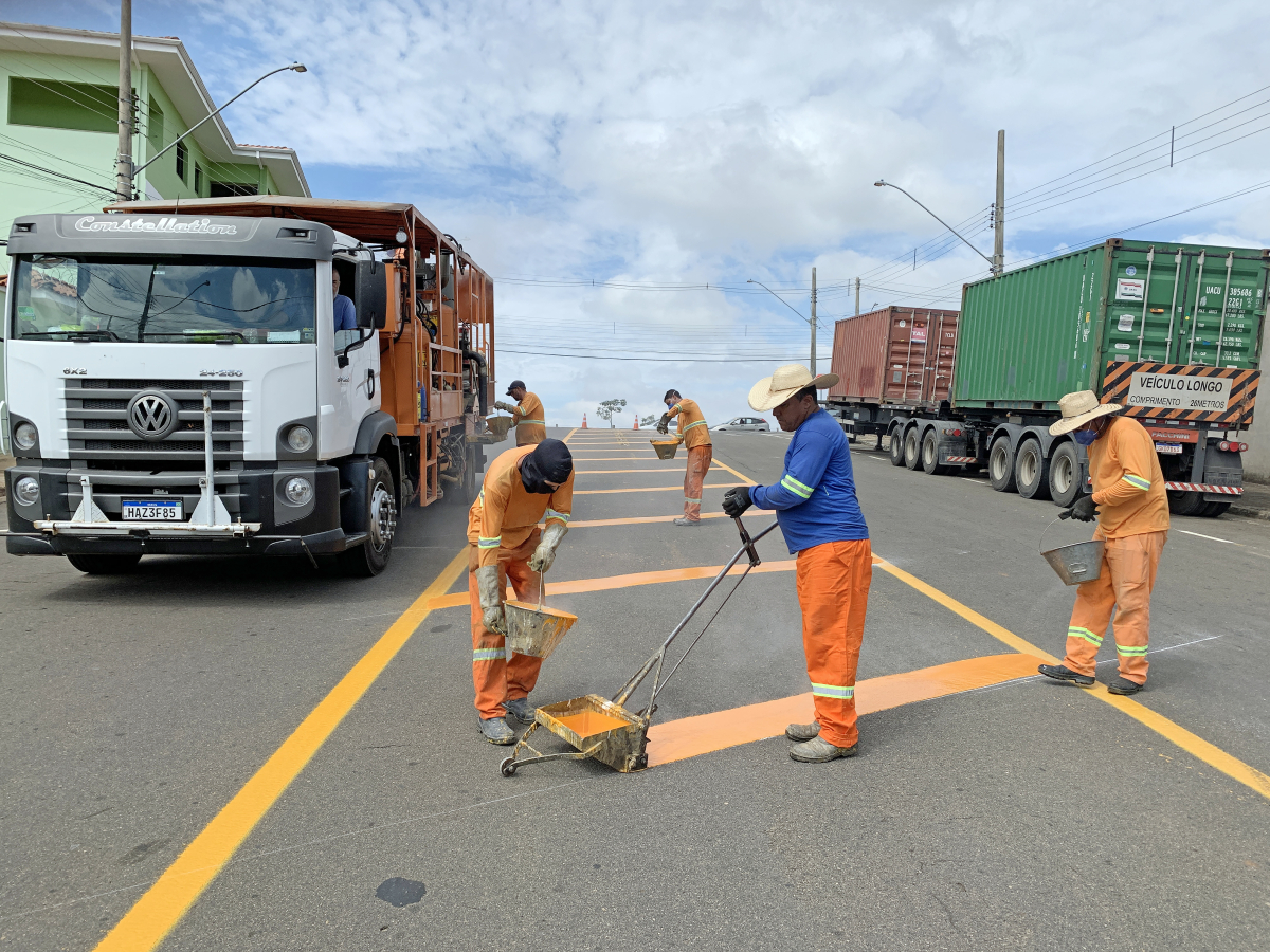 Entre as ações no local está a pintura de um canteiro virtual para facilitar a travessia dos pedestres pela via que tem 20 metros de largura.
