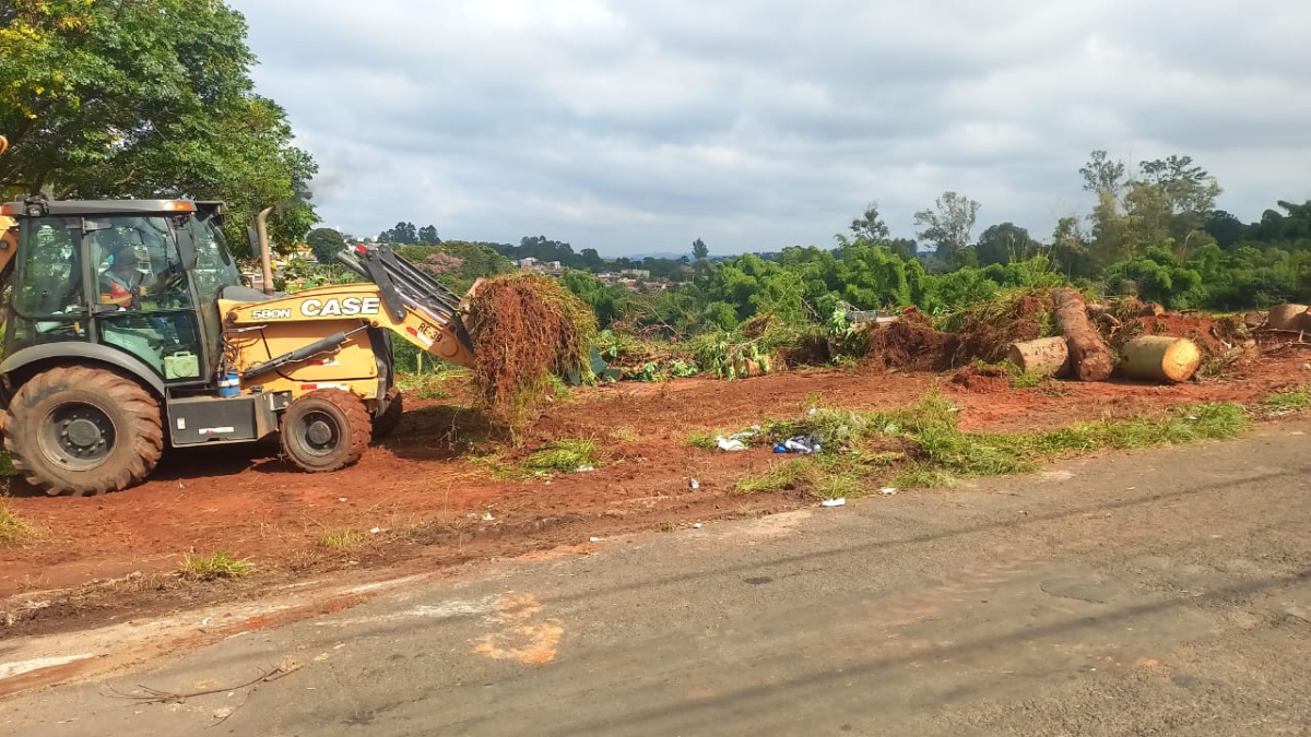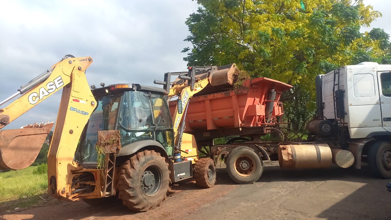 Para a limpeza do local foram utilizados máquinas e caminhões para a retirada dos entulhos e vegetação.