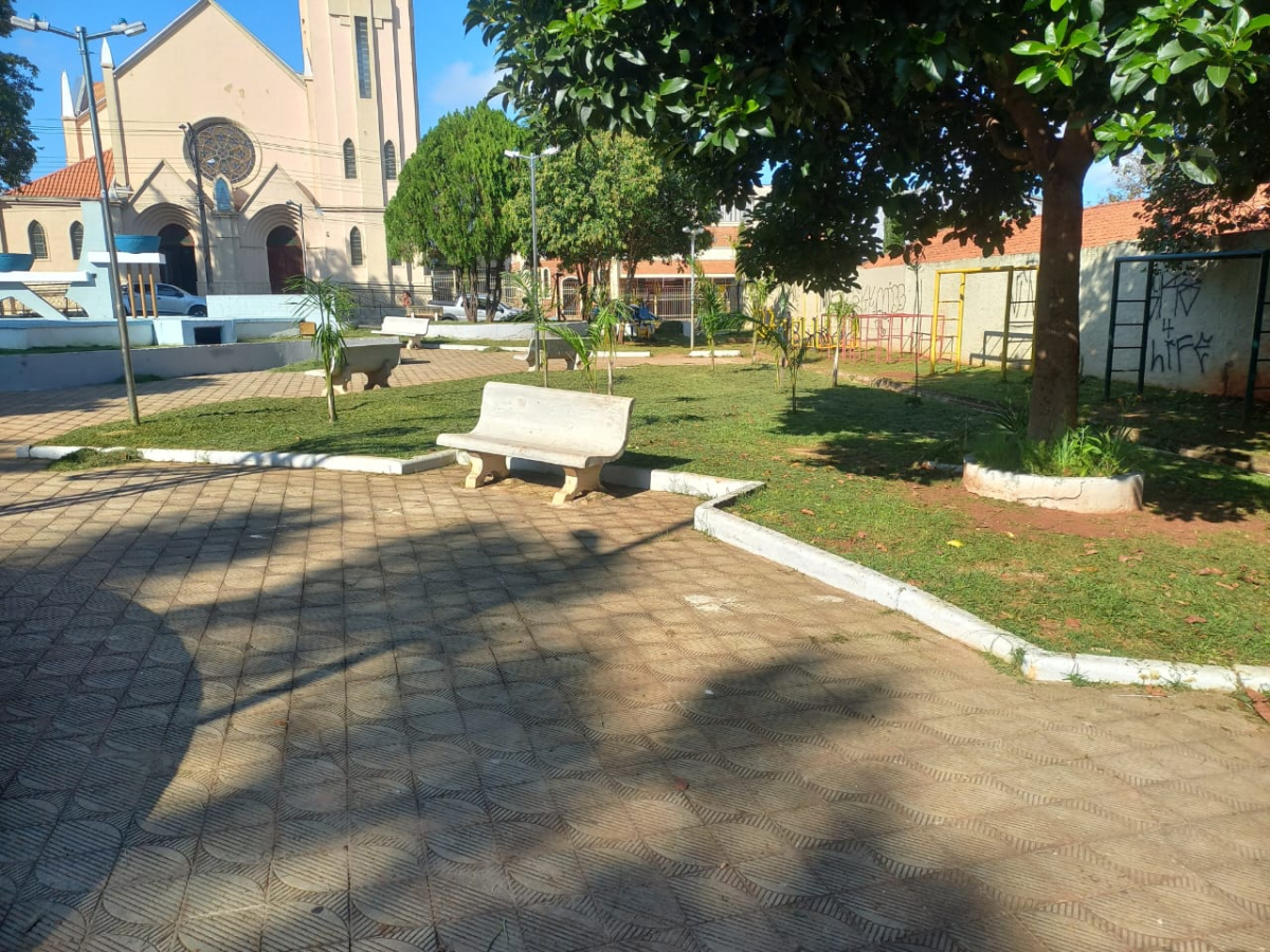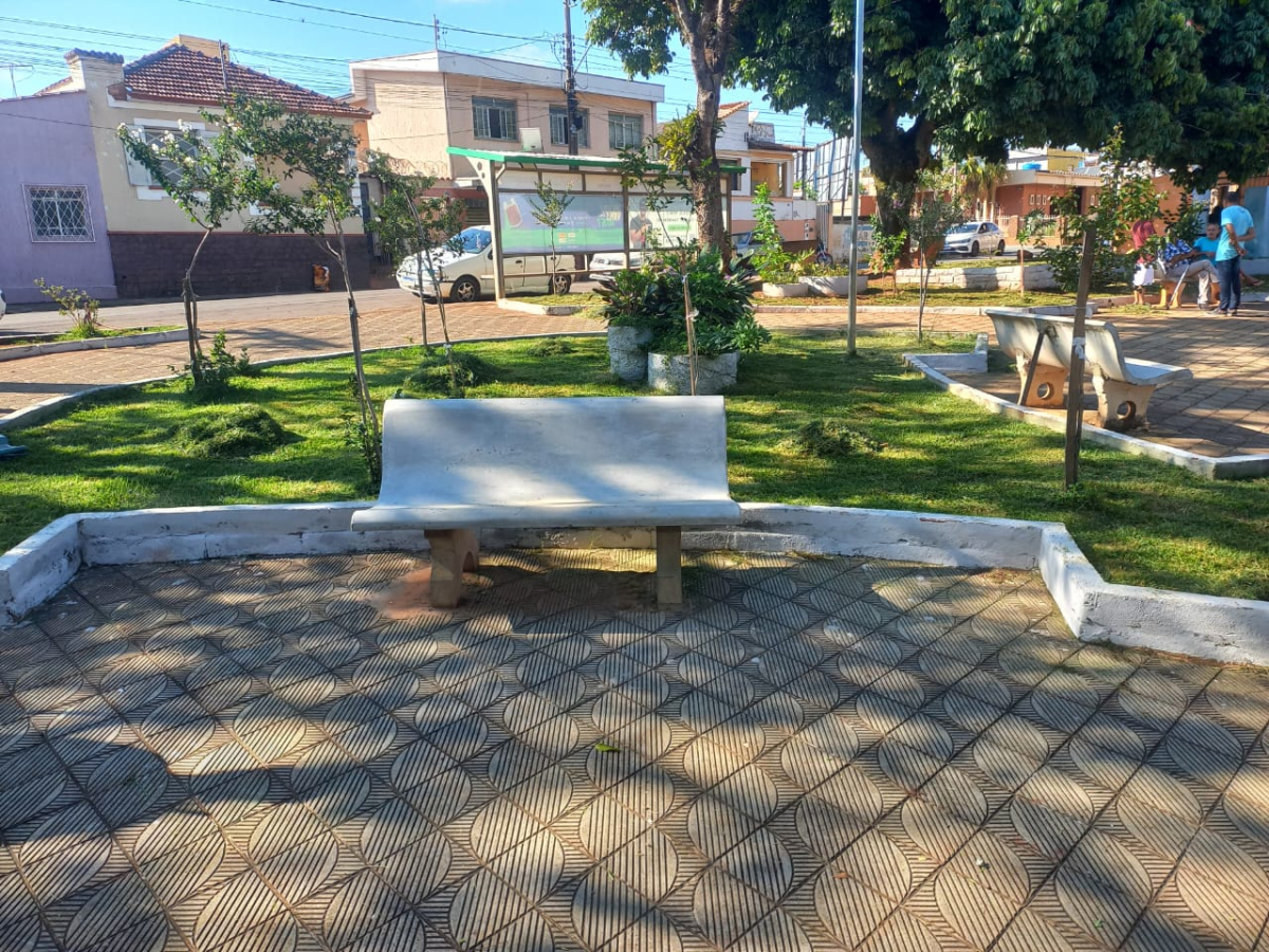A Praça Professora Tereza Carvalho, popularmente conhecida como praça da Igreja Aparecida, recebeu a ação da equipe da Secretaria do Meio Ambiente para a manutenção do local.