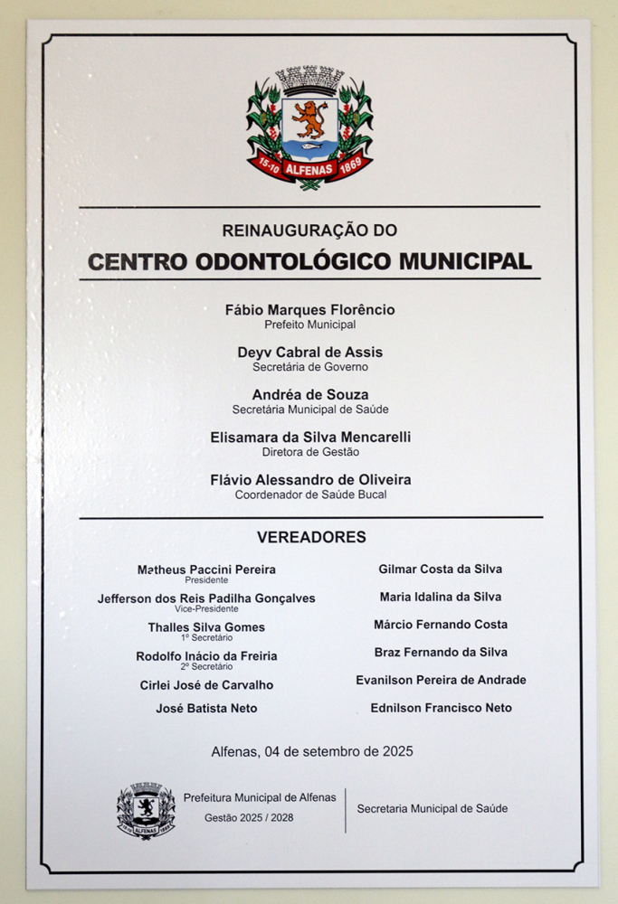 Aconteceu nesta quinta-feira (04/09), a reinauguração do Centro Odontológico. O espaço moderno localizado na área central de Alfenas, foi projetado para oferecer um atendimento de qualidade conforto à população.