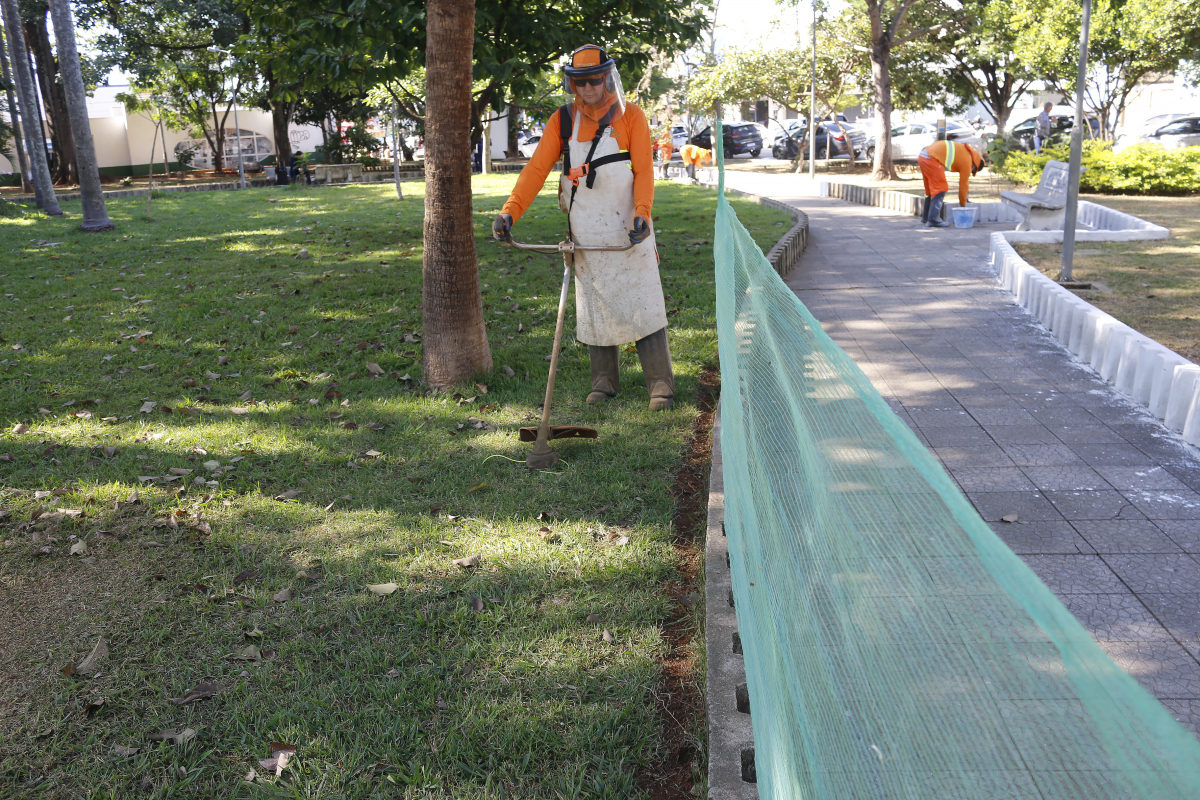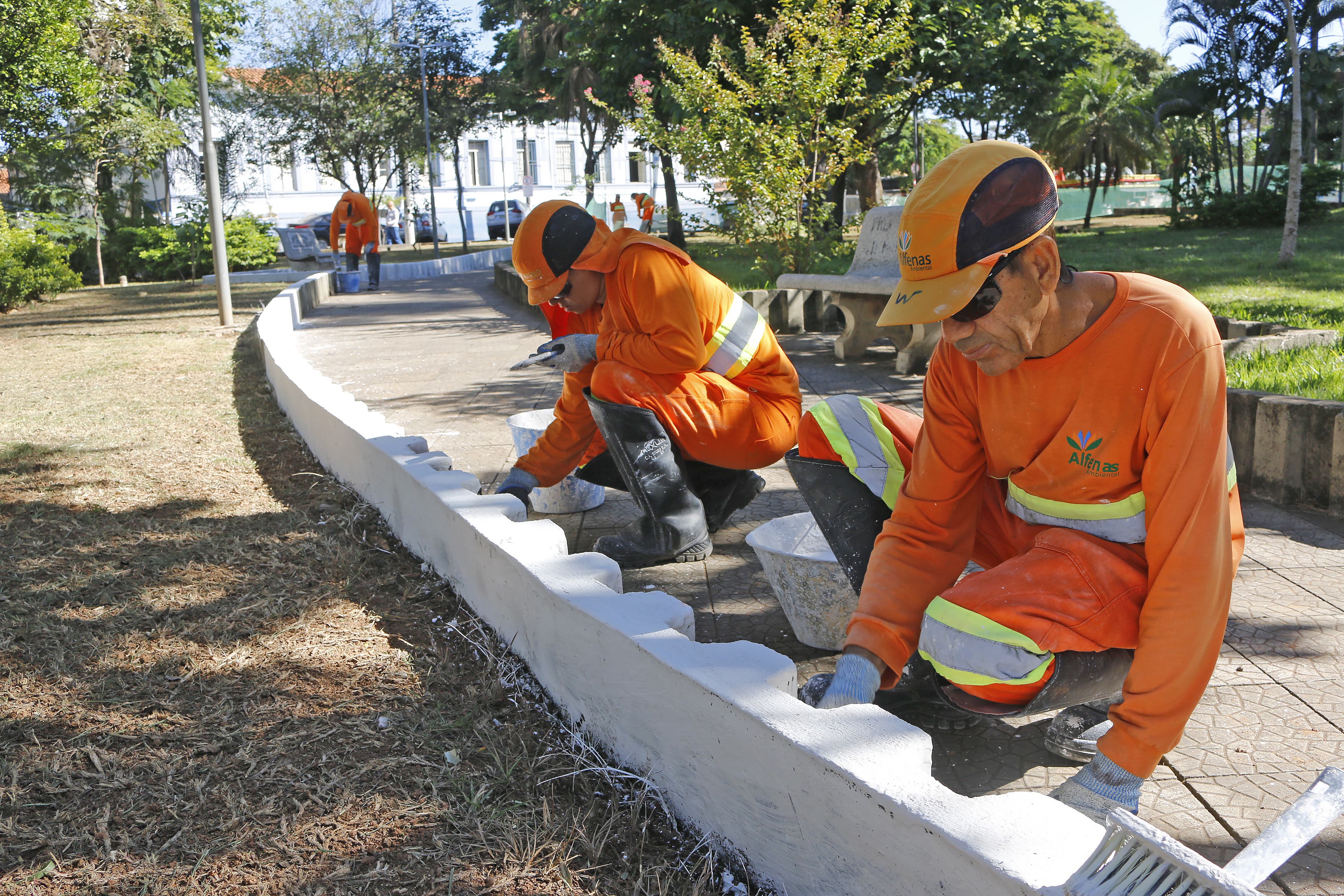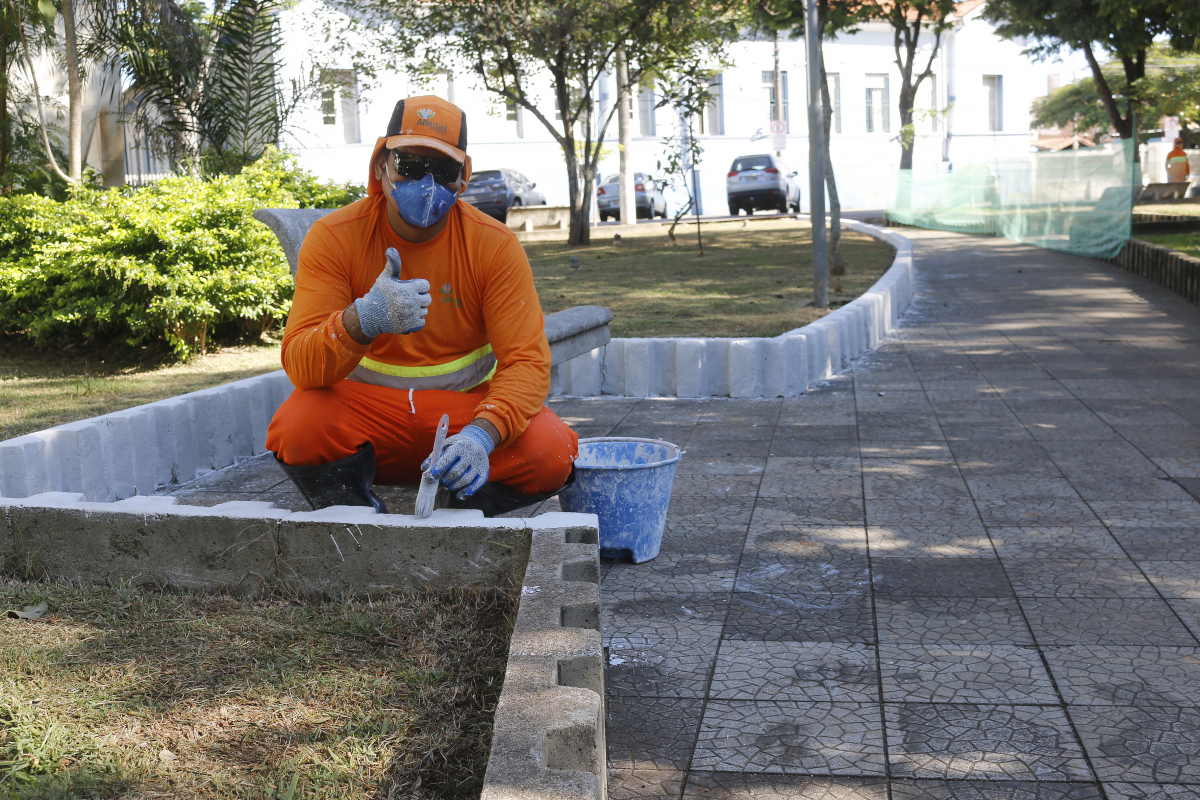 Prefeitura realiza limpeza e pintura na Praça Doutor Emílio da Silveira